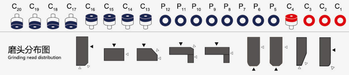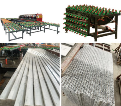 該機器采用數控,變頻調速,帶記憶功能,連續加工時可左右設置留口,可選擇連續進料或間隔進料加工,配置新款輸送架安裝防水防塵萬向輪,帶回闆連線功能,可實現加工闆材多邊不落地,抛光磨料配置内出水,配置三條電動壓杆,爲手、自動一體機,可手動、自動分開操作,可同步設置自動升降調節,可磨削各種不同尺寸、厚度平闆石材的R圓、平邊倒角、上下R圓,一次性加工完成粗磨、精磨和抛光。加工完成後,加工部分的亮度高于闆面亮度。該機結構先進合理,精準度高,效率快,操作方便,維護簡單,最大加工速度4m/分鍾,機械正常使用相當于正常石材加工15個工人的工作量,并且杜絕出現人工加工時産生的工藝缺陷。