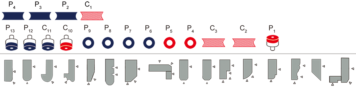 該機配置蝸牛扣接頭,1号電機背切5.5千瓦(1号電機45°斜放,裝直徑300鋸片加工石材反面背切),2号,号3成型電機卧放5.5千瓦(2-3号電機平放配合後4個擺動電機加工異形邊),4号,5号電機4千瓦,6号,7号,8号,9号電機3千瓦(4-9号電機立放,加工底部平抛光,可移動石材正面加工地角線),倒角電機10号,11号,12号,13号電機3千瓦,(後4個倒角電機可45°-90°任意電動調節角度,45°加工倒角,調節70°用水磨片加工大斜邊,調到90°換滾輪加工各種異形邊),可手動、自動分體操作,可配置直徑18cm磨輪,進出導軌同步升降,根據石材不同尺寸,厚度磨削各種平闆石材的大小圓邊、法國邊、直線底邊45℃倒角、上下倒角帶側抛,平抛不帶絲線,上下想R圓的側抛,開樓梯防滑帶抛光帶線形一次完成,槽拉光開槽拉光(雞嘴邊)海棠角、背切(采用直徑300鋸片切割石材,切割的廢渣可自動分離排出水箱)等各種異行邊,粗磨、精磨、抛光工序一次完成,加工後亮度高于闆面亮度,抛光磨輪磨損消耗後,磨輪可在運行過程中手工電動調節補償,結構先進合理,精準度高,效率快,操作方便,維護簡單,在磨削過程中可調節進料速度和進行量,最大加工5m/分鍾,機械正常使用相當于正常石材加工15個人工作量,并杜絕出現工人加工時産生的工藝缺陷。