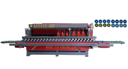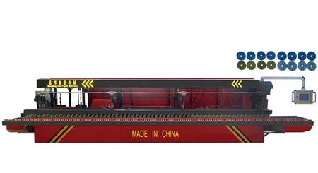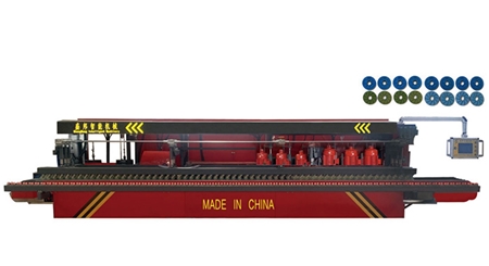 該系列全部機型采用數控配置PLC面闆,無極調速,工作台滾輪輔助上料,履帶式橡膠夾傳送石材,有手動和自動兩種操作模式,磨輪可在運行過程中自動補償。可磨削加工不同尺寸、厚度的石材,能一次性完成粗磨、精磨和抛光